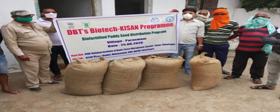 | 1 | Distribution of Zinco rice variety and seed treatment with Pseudomonas Fluorescence | Crop + NRM Based module | Achhola, Paraswani, Barbaspur, Birkoni and Saradih | 50 | ![]() |