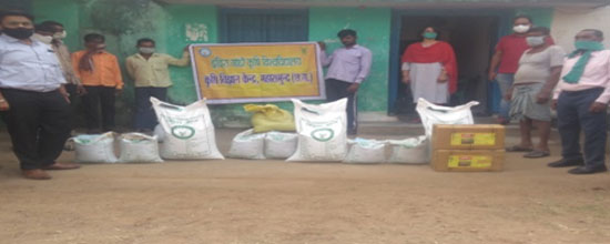 | 7 | Distribution of biofertilizer (Trichoderma, PSB,Rhizobium) for pulse | Crop+ NRM based module | Distribution of biofertilizer (Trichoderma, PSB,Rhizobium) for pulse | 09.11.2020 | Jawali, Ranjna, Kasaipali, Bhanwar, Sonpuri | ![]() |