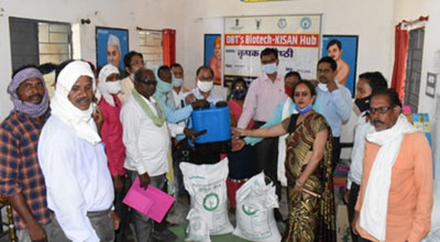 | 8 | Distribution of bio pesticide and bio fungicide for pulse (Bacillus thuringiensis, Metarhiziumanisopliae) | Crop+ NRM based module | Distribution of bio pesticide and bio fungicide for pulse (Bacillus thuringiensis, Metarhiziumanisopliae) during rabi season | 06.03.2021 | Jawali, Ranjna, Kasaipali, Bhanwar, Sonpuri | ![]() |