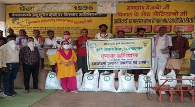 | 3 | Distribution of biofertilizer (Trichoderma, PSB,Pseudomonas) for paddy | Crop+ NRM based module | Distribution of biofertilizer (Trichoderma, PSB,Pseudomonas) for paddy | 02.07.2020 | Jawali, Ranjna, Kasaipali, Bhanwar, Sonpuri | ![]() |